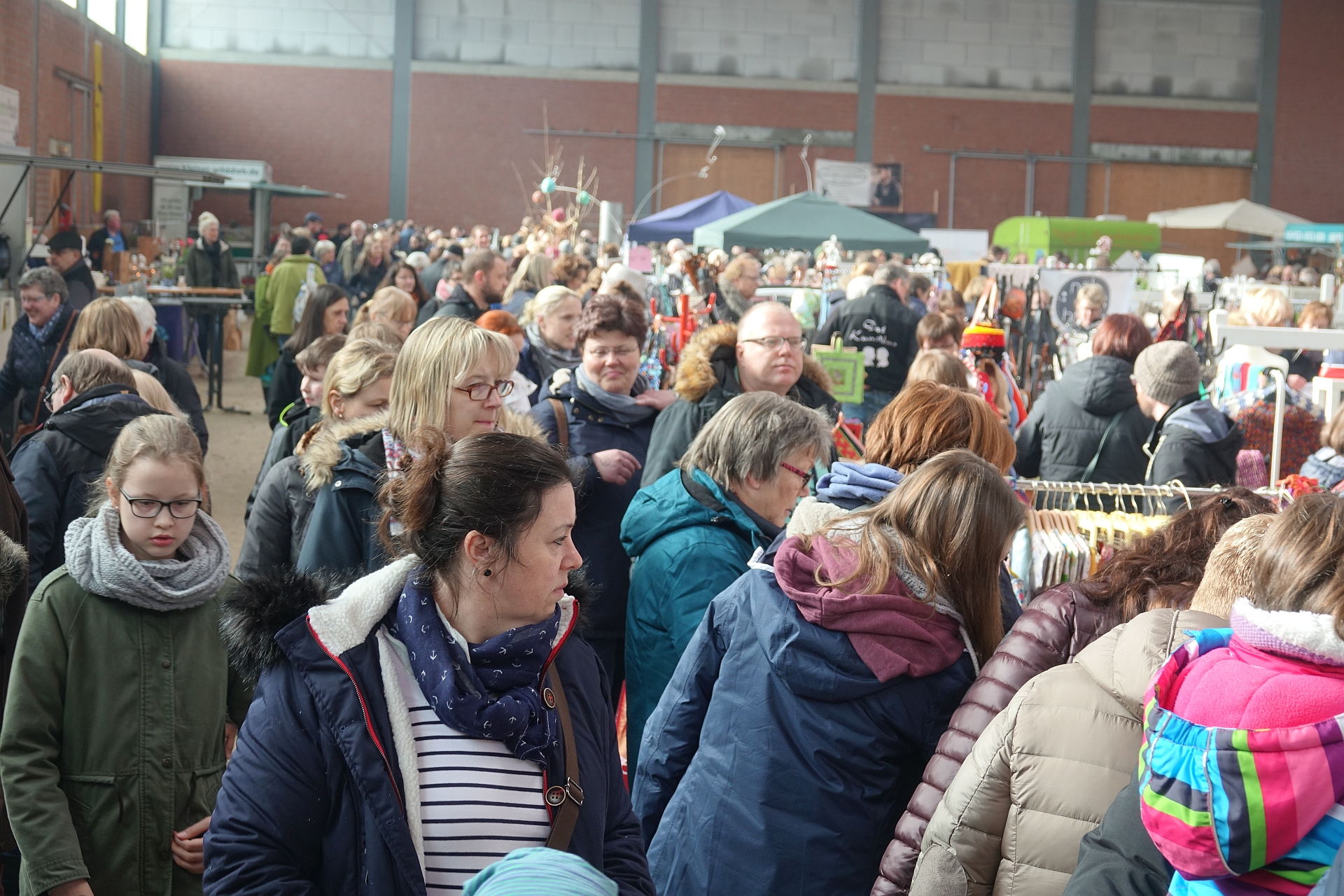 Eine prall gefüllte Messehalle mit Ausstellern und Besuchern, die die Parkmöglichkeiten am Reitsportzentrum bis hin zur Süderfenne in Timmel nutzten.