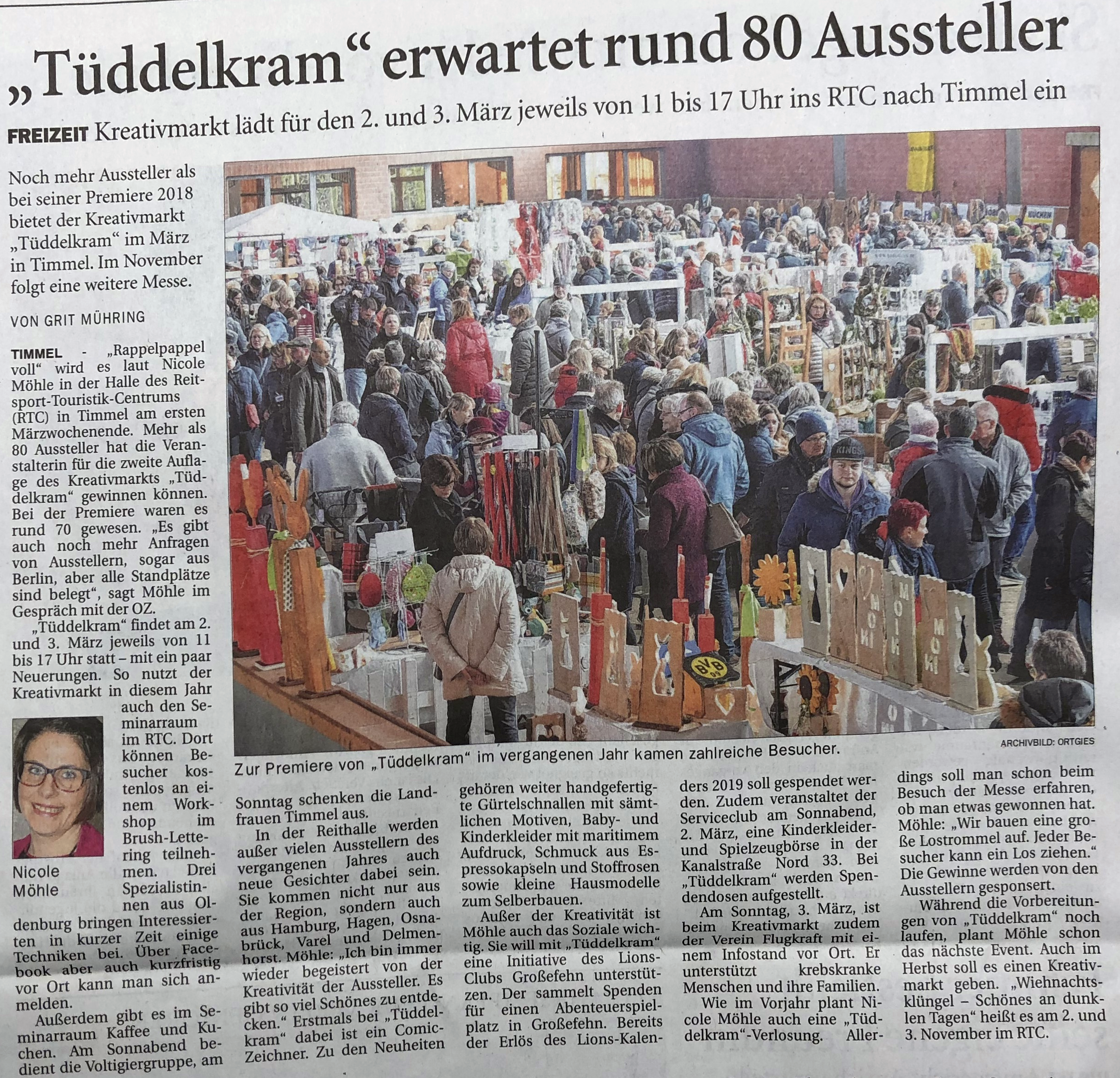 2 Tage. Mehr Aussteller. Mehr Besucher. Der Kreativmarkt Tüddelkram, der vom 02.-03. März 2019 im Reitsport-Touristik-Centrum (RTC) in Timmel von Nicole Möhle veranstaltet wird, findet zum zweiten mal statt.